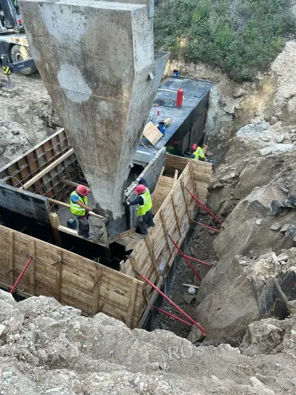 ✅ Заливка бетона: прием и укладка заводского бетона с обязательным вибрированием (удаление пустот).