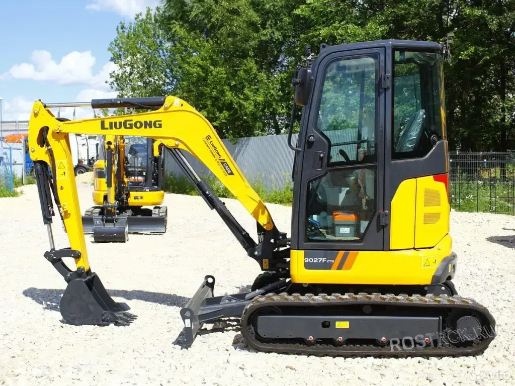 услуги профессионального мини-экскаватора LiuGong 9027F. Новая, маневренная и мощная техника на резиновых гусеницах — идеально подходит для работы в стесненных условиях, на дачных участках и вблизи фундаментов.