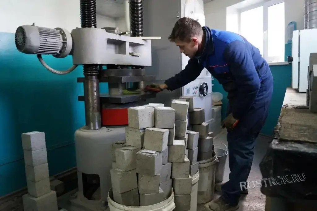 Испытание контрольных образцов (кубиков): на сжатие в лабораторных условиях.