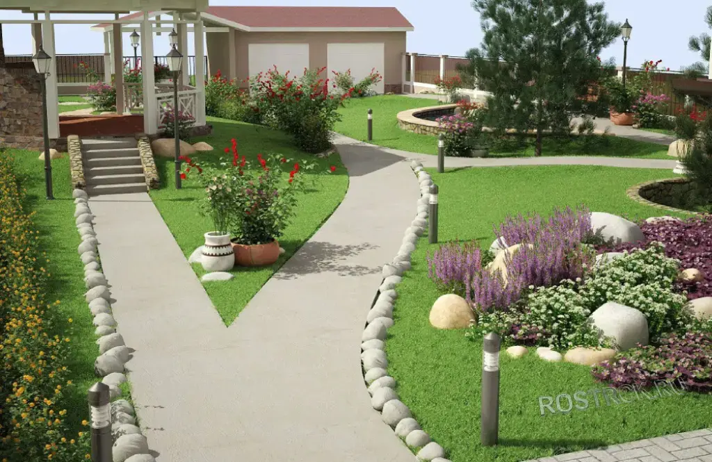 Твердые покрытия: мощение дорожек, парковок и установка бордюров.