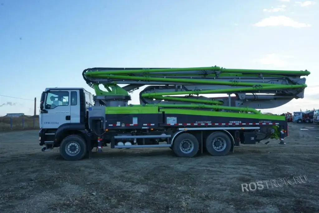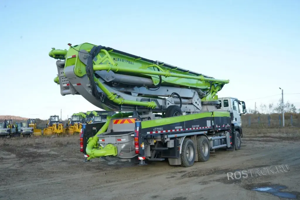 ✅ 63 метра — одна из самых длинных стрел в регионе. Позволяет заливать масштабные фундаменты, плиты и высотные здания без переезда машины.